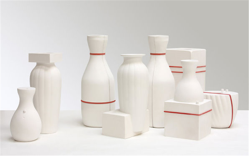 石膏注漿成型的模具通常在使用后就被丟棄。這些白色優(yōu)美剛?cè)岵?jì)的花瓶從模具中來并表達(dá)出通常不為人們所見的模具之美。